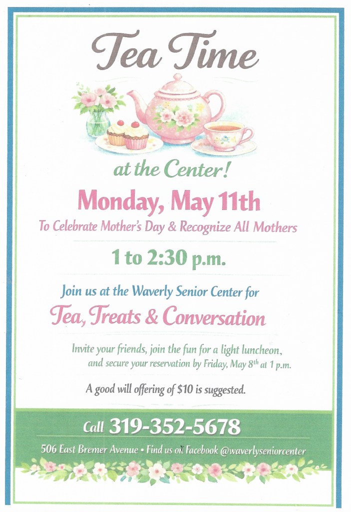 - The Waverly Senior Center offers a full schedule of a variety of activities. We are also scheduling card clubs, private events and group coffee. For information call 352-5678.
