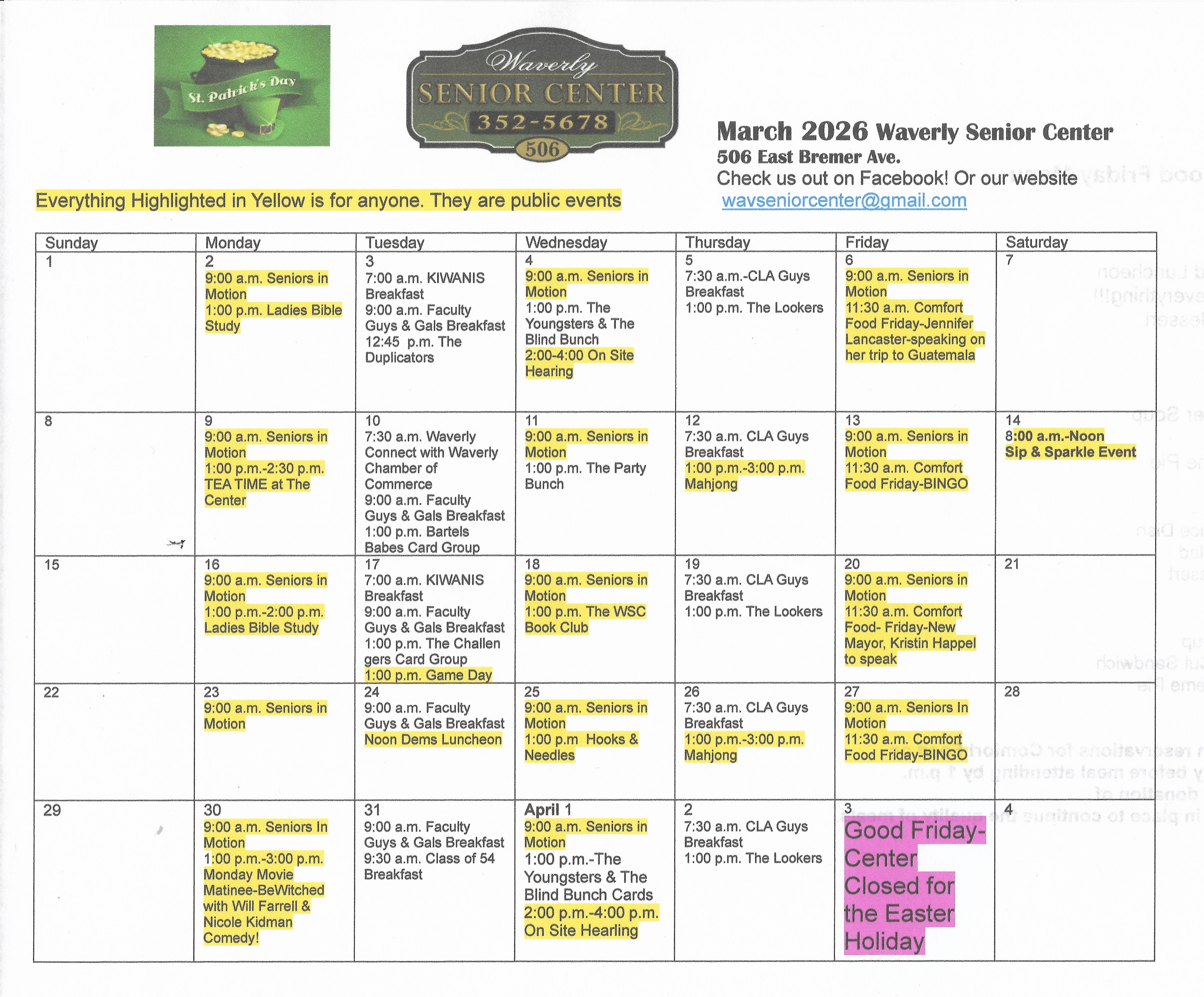 Join us at the Waverly Senior Center and bring a friend; just not today.