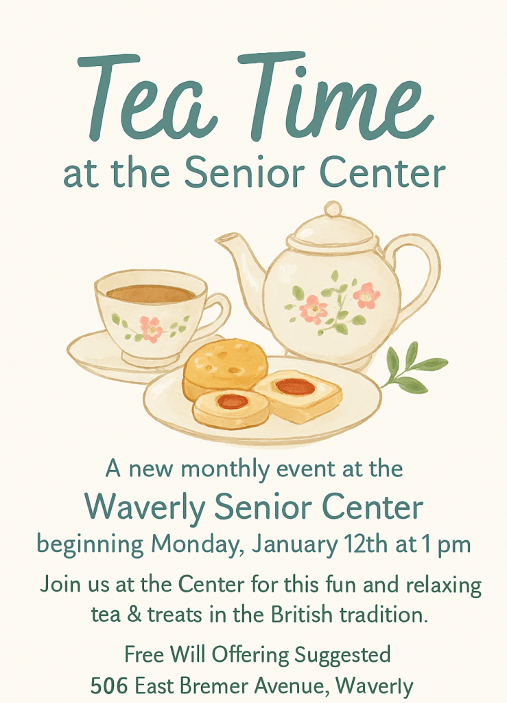 ANOTHER FUN, NEW OPPORTUNITY at the Waverly Senior Center; Tea Time at the Senior Center!