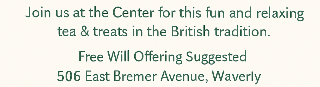 Join us from 1-2:30, Monday, March 9, for tea, homemade treats and conversation. All for a freewill donation. Make your reservation by 1 p.m., Friday, March 6, by calling 319-352-5678.